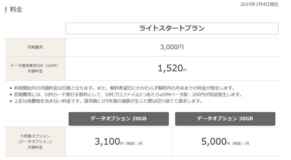 最もベーシックな「ライトスタートプラン」は、6GBを月額1,520円(税抜)で使用できます。本データ通信のみの提供のため、電話やSMSには対応していません。別途、通話・SMSに対応したメイン回線が必要となります。