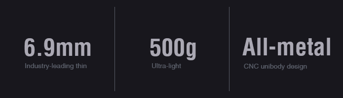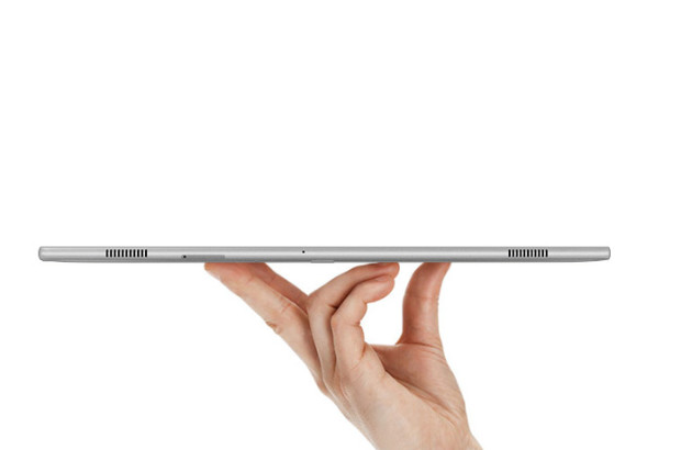 ディスプレイ部のベゼルは薄型に仕上がっています。薄型化したことで持ち運びやすくなっています。本体の厚さは6.9mmの"ウルトラスリムデザイン"を採用し、違和感なく持てます。重さは500gとなっており、10.5インチディスプレイを搭載するタブレットの中では軽量な部類に入ります。