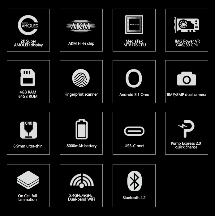 | Wi-Fi | IEEE 802.11 a/b/g/n/ac (2.4GHz&5GHz) |