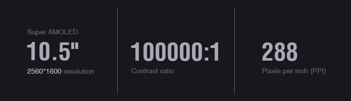 | ディスプレイ | 10.5インチ 2,560×1,600 Samsung AMOLED (有機EL) |