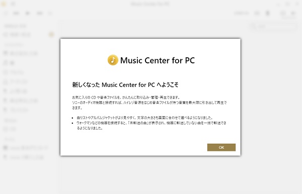 Music Center for PCのVer.1.X → Ver.2.0へのアップデートは、旧・ソフトウェアを起動すると上記メッセージが出てきますので、指示に従って操作するだけでVer.2.0をインストールするだけです。