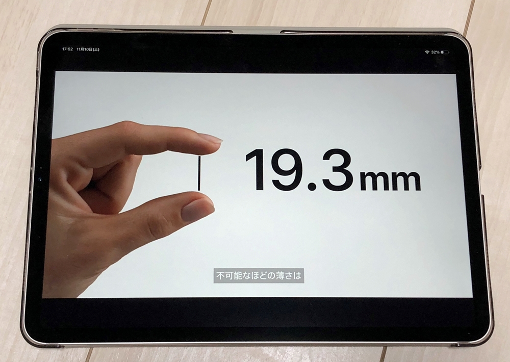 写真では伝わりにくいですが、タブレットではiPad Pro 11から導入された「True Tone」により、ディスプレイの発色が「本当にキレイ」です!特に「ホワイト系」と「ブルー系」の発色がキレイなので、ネットのニュースの閲覧、海が綺麗な観光地での写真を閲覧には最高の環境だと思います。もちろん、iPadでNetflixやAmazon Prime Videoを視聴する時にも、True Toneの効果が発揮されると思います。