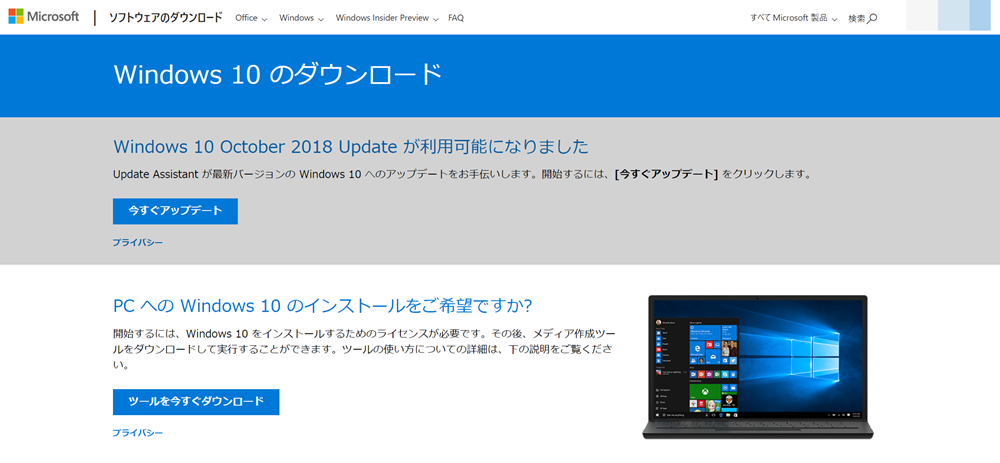 ※Microsoft公式サイト:https://www.microsoft.com/ja-jp/software-download/windows10