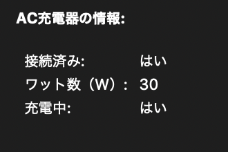 実際にMacbook Pro (2017)13インチモデルで何Wで充電されるか確認したところ、最大出力である“30W”で充電されていました!