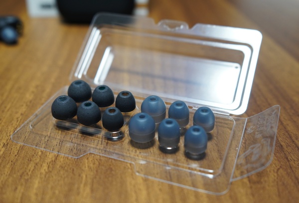 イヤホンの装着性を左右するイヤーピースは「イヤホンチップ(ハイブリッドイヤーピースロング)」が4種類(内1種類は本体に装着済み)、「トリプルコンフォートイヤーピース」が3種類の合計7種類が用意されています。