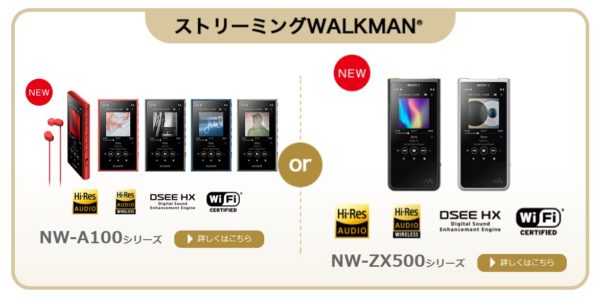 WALKMAN対象モデルはNW-A100シリーズ と NW-ZX500 の2モデル