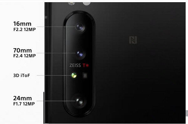24mmのメインカメラのセンサーサイズは1/1.7型に大型化したことで、暗闇でもノイズが入りにくい高感度撮影の性能が約1.5倍に向上しました。加えて、24mmのメインカメラはドイツのカールツァイスレンズ製となりました。「T*コーティング」効果により、レンズ内反射が抑えられ、キレイな写真や動画を撮影できます。この辺りはミラーレスカメラ「αシリーズ」で培ったノウハウが生かされているようです。