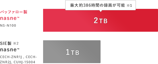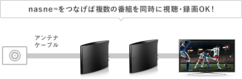 旧ソニー・コンピューターエンタテインメント製nasneとBUFFALO製nasneの合計2台を繋げて同時視聴や同時録画もできる仕様となっており、既存ユーザーでも買い増して使うことができます。