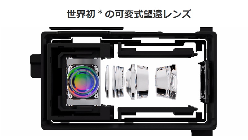 カメラには世界初の可変式望遠レンズを搭載!