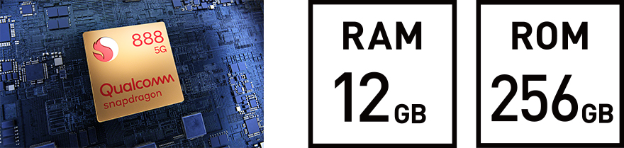 チップセットにはQualcomm Snapdragon 888 5G Mobile Platformを採用し、5Gミリ波もサポートしています。また、RAMが12GBとなりハイエンドAndroidスマホの名に恥じないレベルに仕上がっています。ROMは256GBで標準的な容量ですが、iPhoneと異なりmicroSDXC等で容易に大容量化できます。1TB microSDXCの価格も安価になり始めているので、1.25TBのスマホにカスタマイズすることもできます。