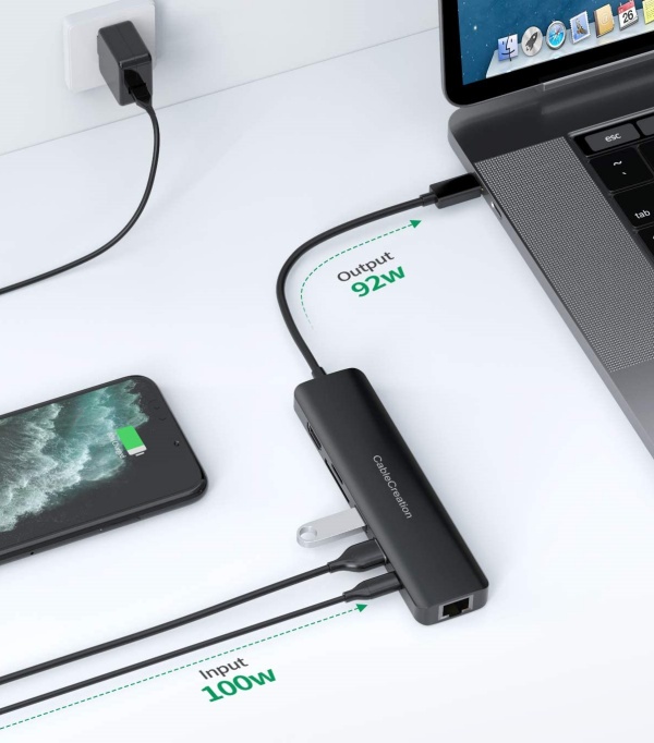 CableCreation 7in1 は、USB Type-Cの最大100W入力のPDを搭載しています。