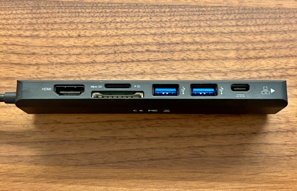 最近のUSB Type-Cハブはメタル質でクール系でカッコいい見た目ですが、CableCreation 7in1はブラックを基調としたマット質でノートパソコンを傷付けにくい素材です。
